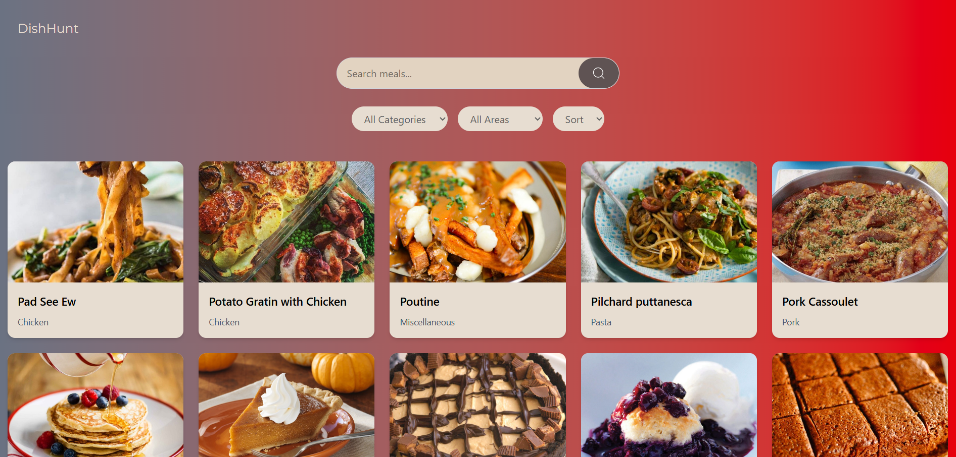 A meal discovery app that allows users to search and filter a wide variety of meals from around the world.